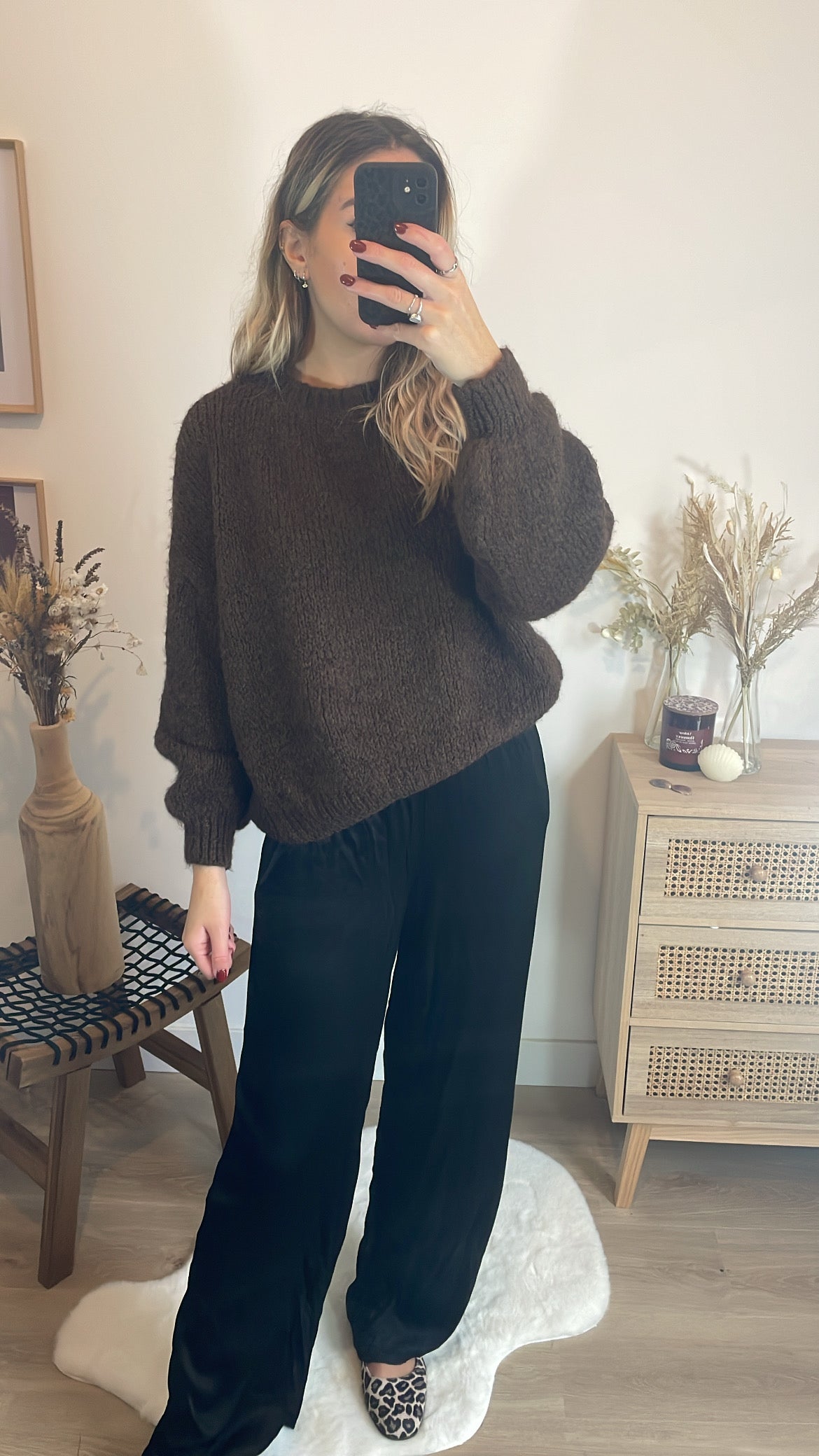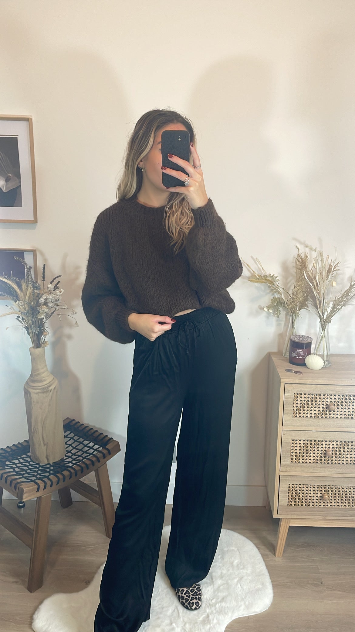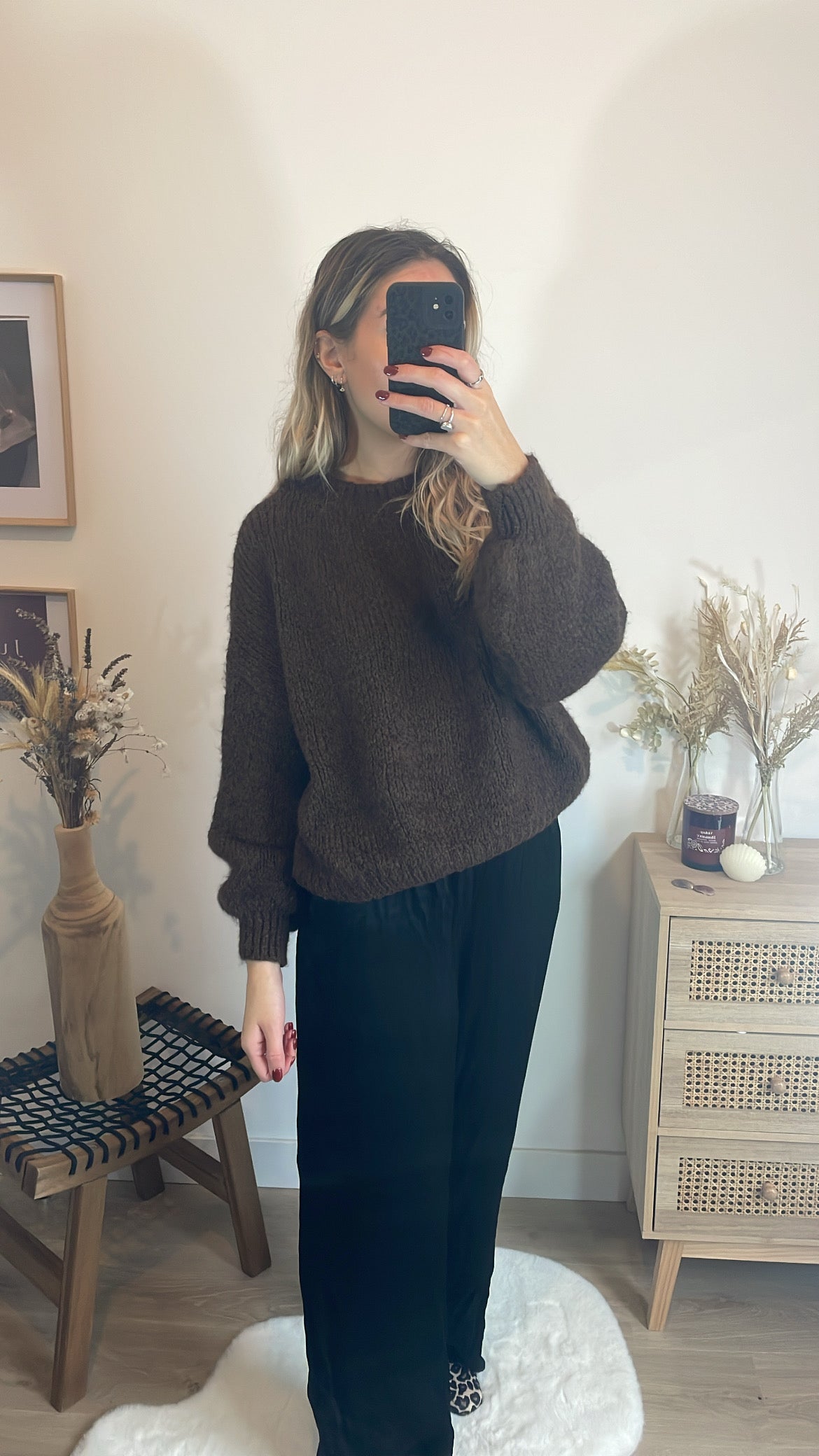 Pour une tenue élégante et facile à porter, associe ce pull taupe au pantalon Joséphine. La douceur et la couleur neutre du pull se marient parfaitement avec le pantalon, créant une silhouette chic et moderne tout en restant confortable.