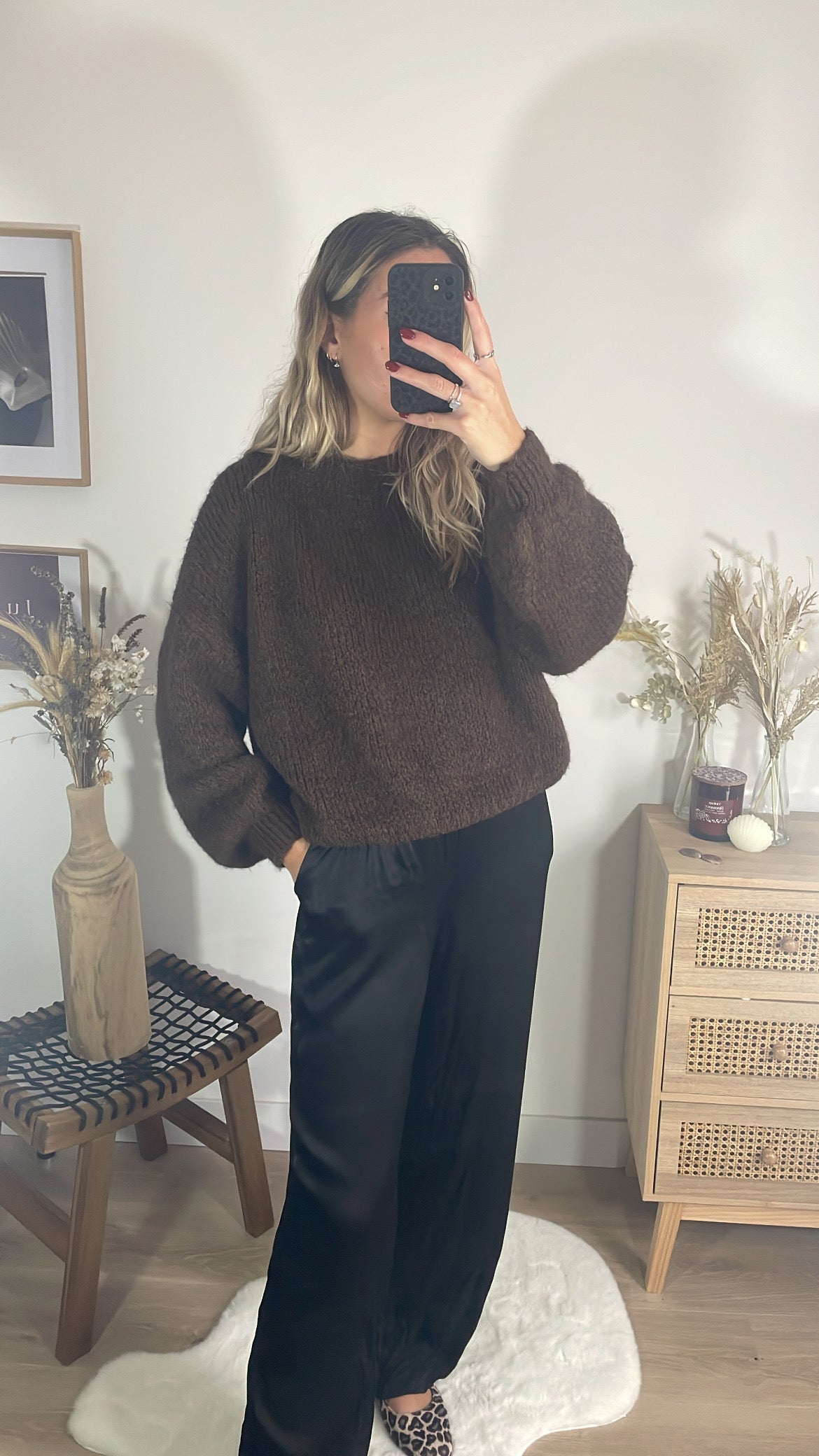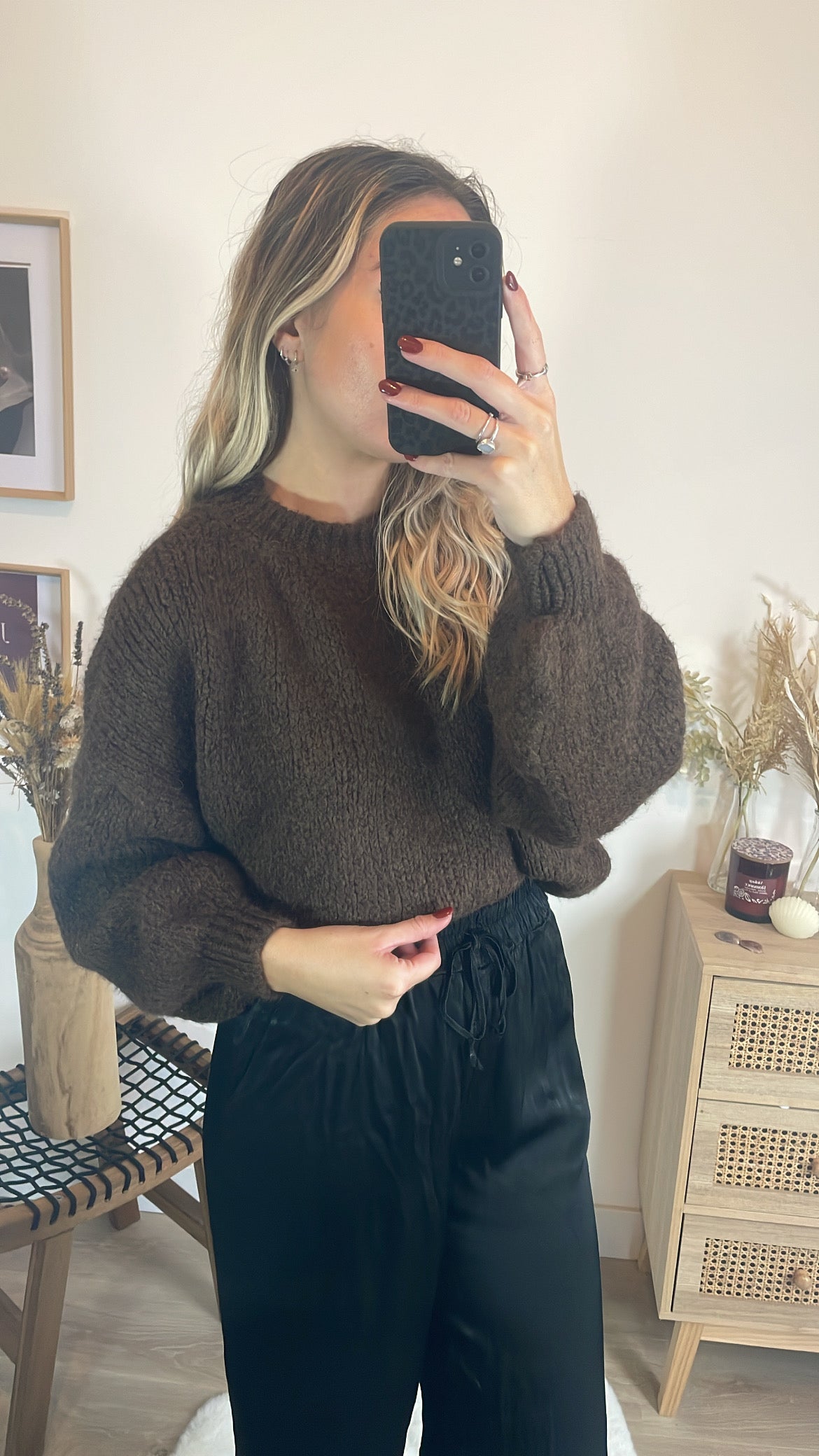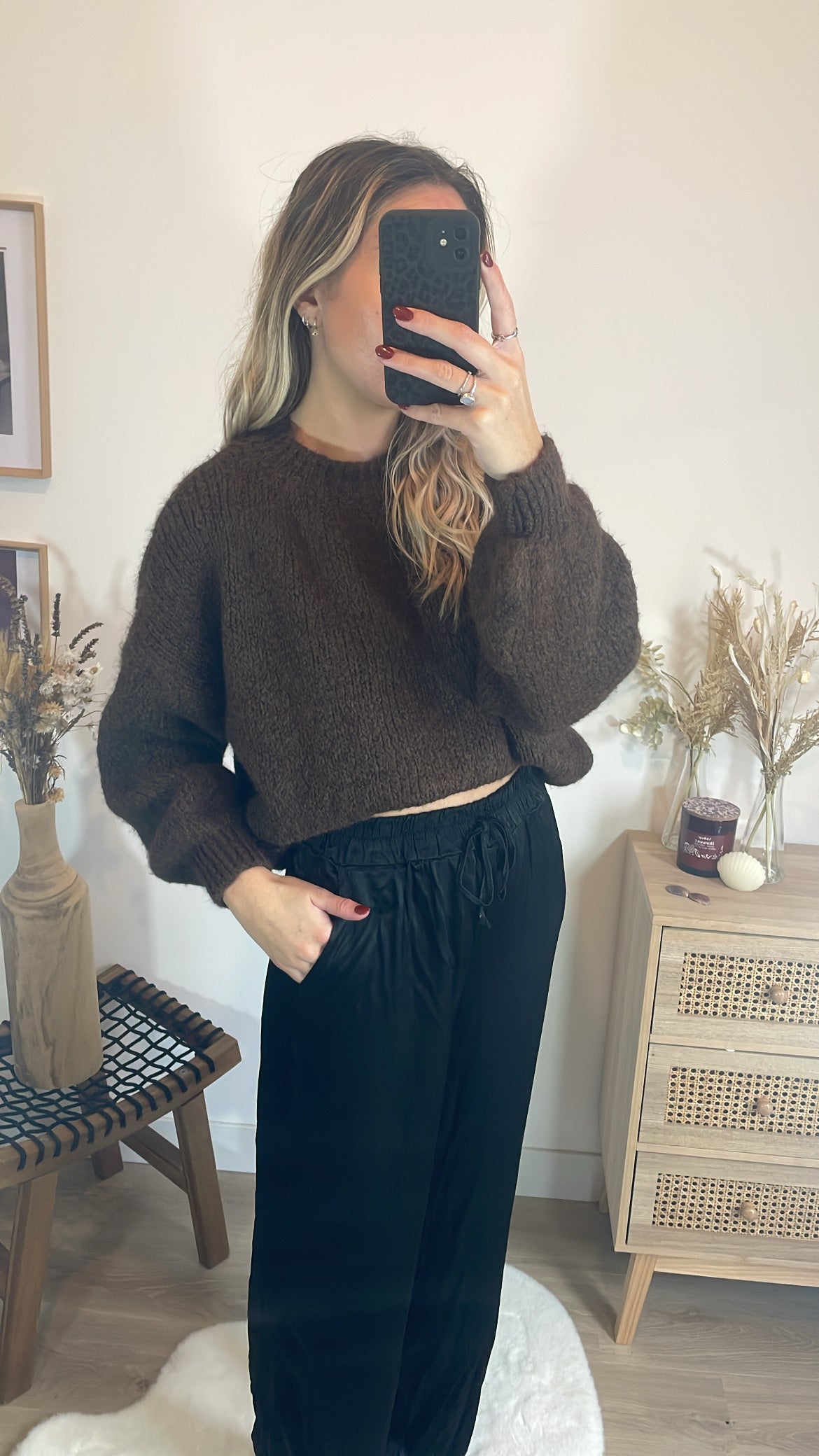 Pour une tenue élégante et facile à porter, associe ce pull taupe au pantalon Joséphine. La douceur et la couleur neutre du pull se marient parfaitement avec le pantalon, créant une silhouette chic et moderne tout en restant confortable.
