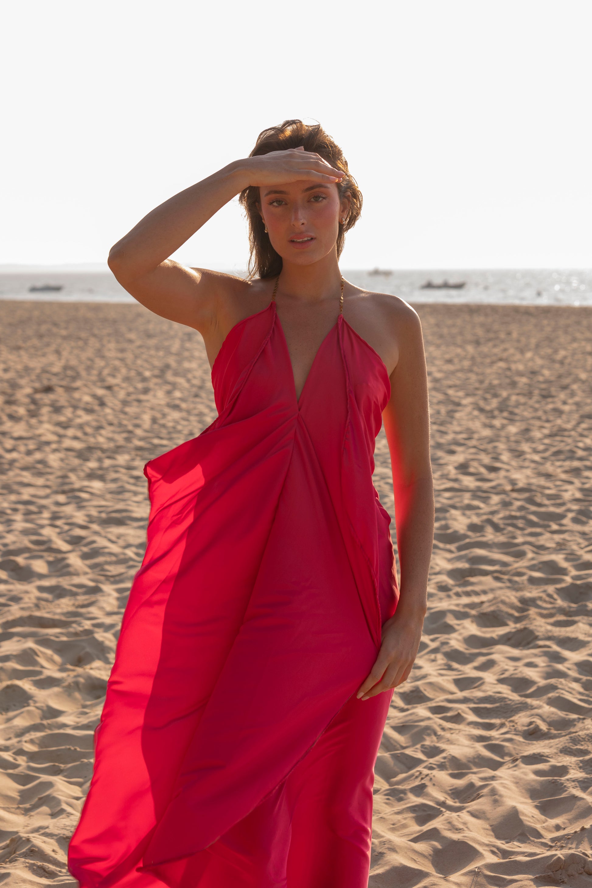 Gisèle fuchsia, c’est la robe qui ne passe jamais inaperçue. Sa matière satinée glisse sur la peau, se ferme avec un bijou élégant. Une robe qui sublime toutes les silhouettes avec panache.