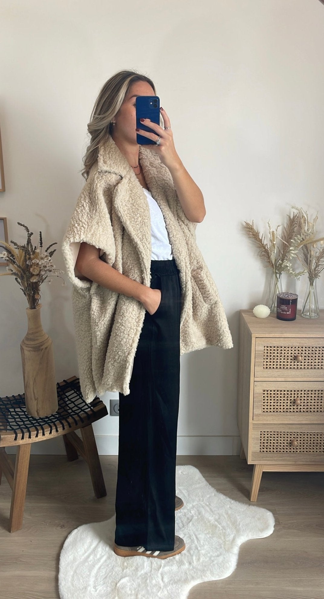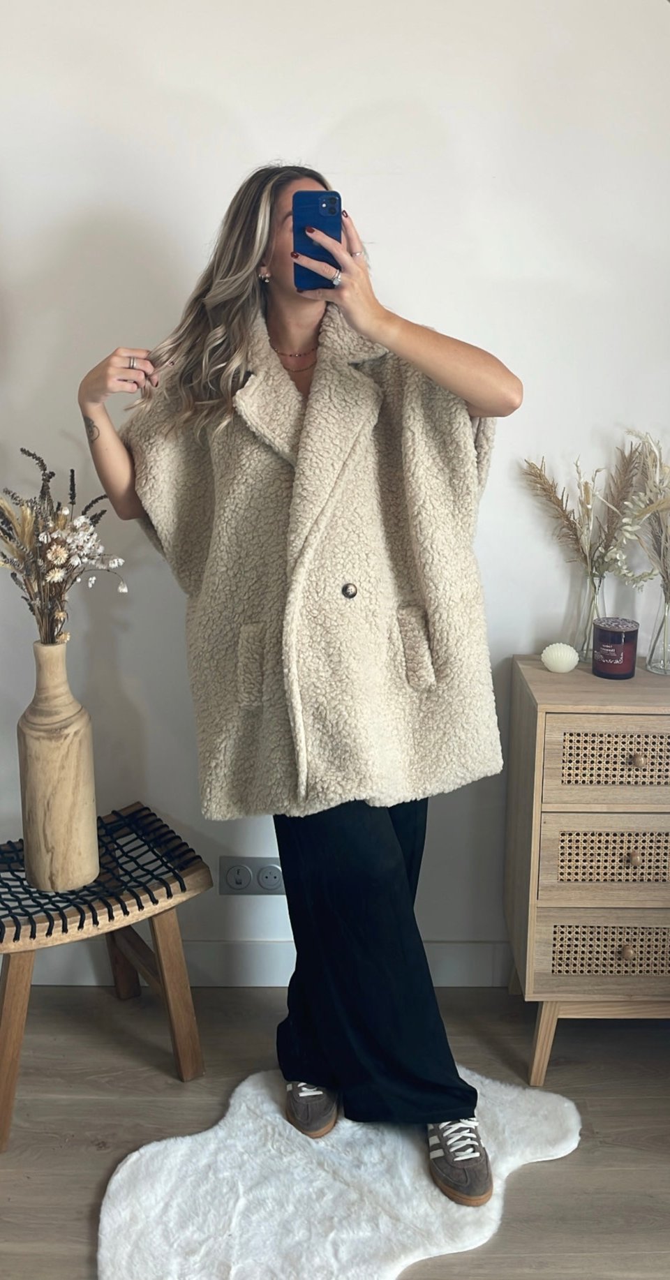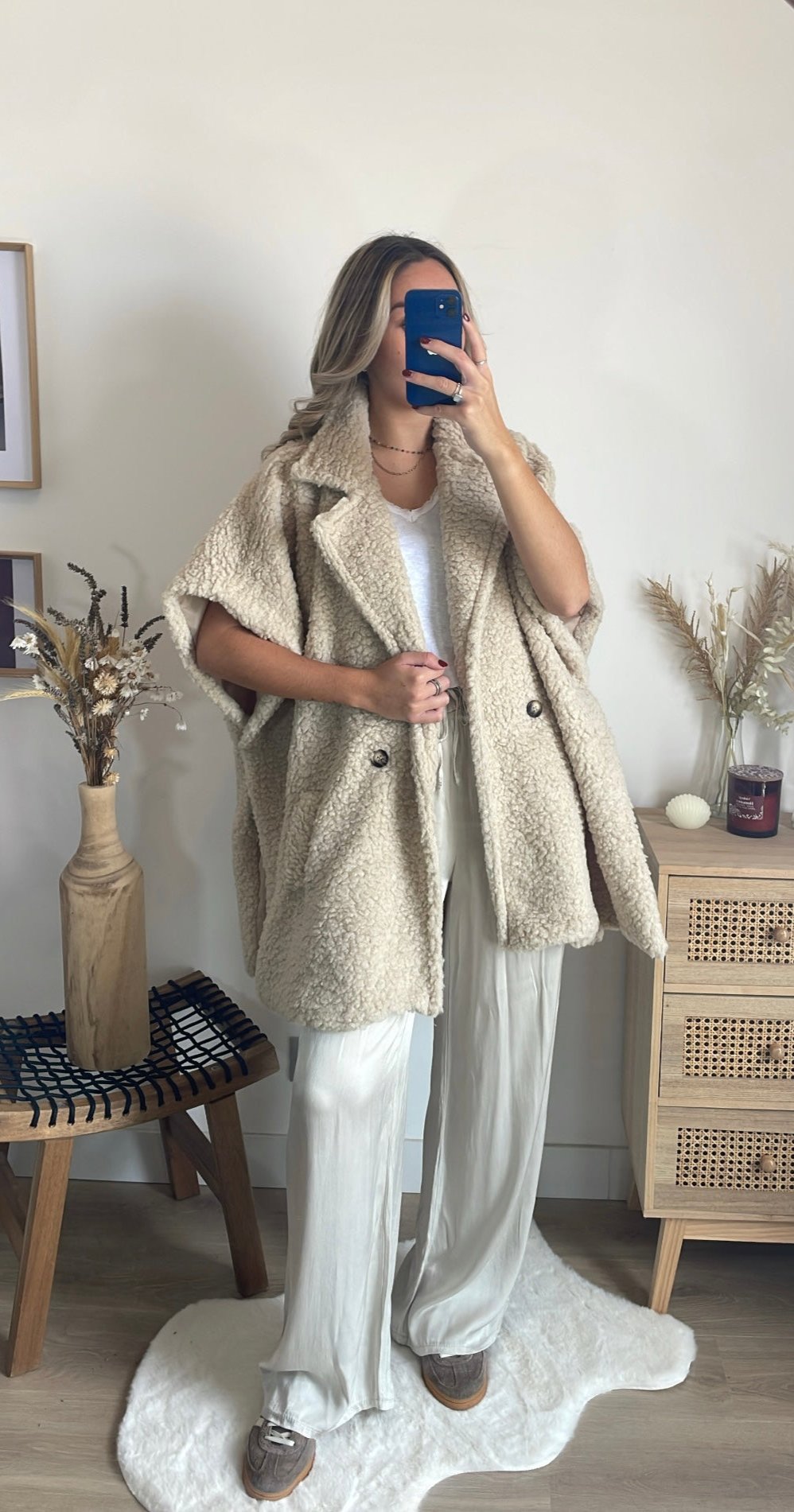 Ajoutez une touche de confort et de style à votre garde-robe avec ce poncho oversize en moumoute – l'élément essentiel pour des journées cosy et élégantes !