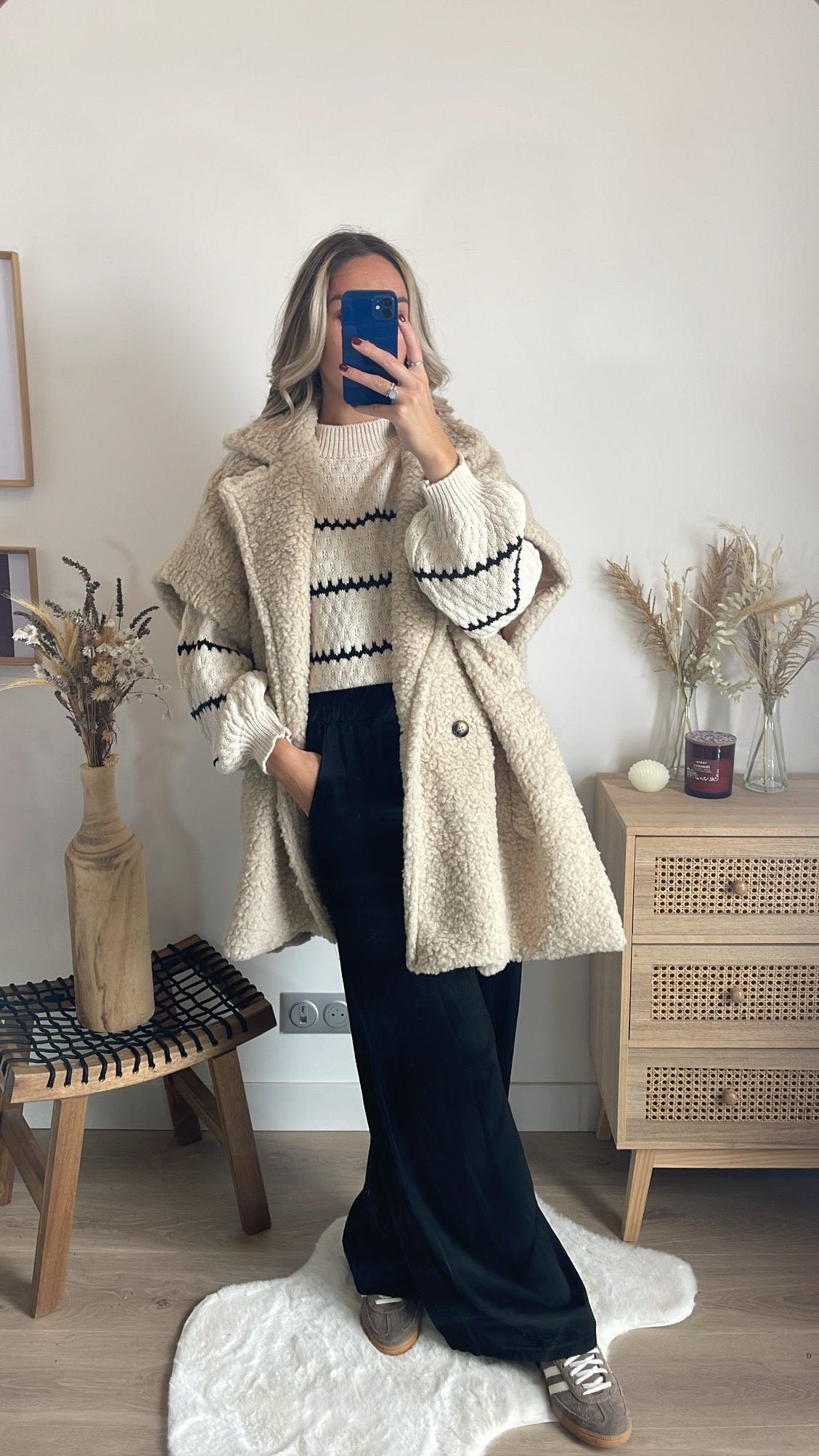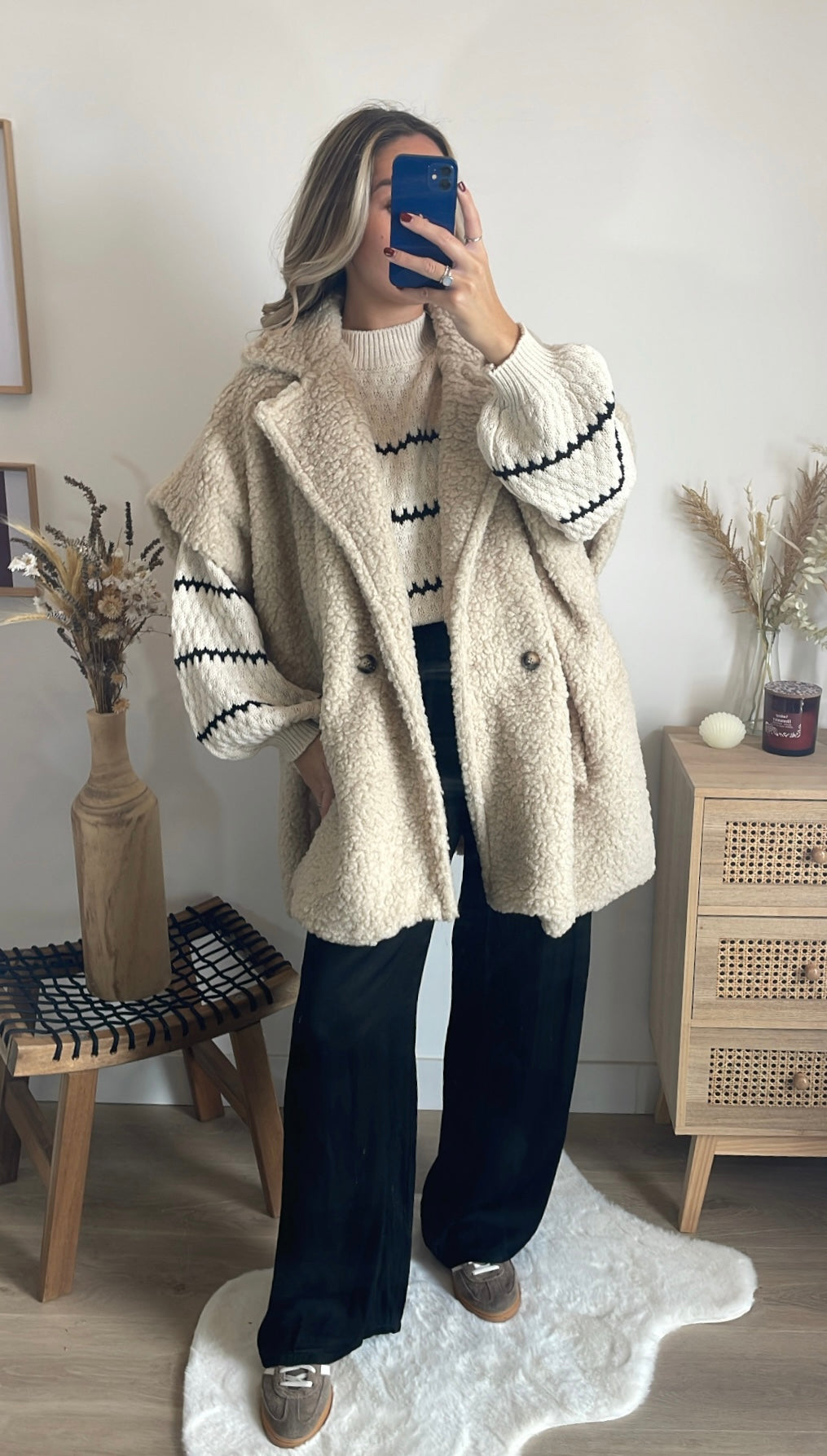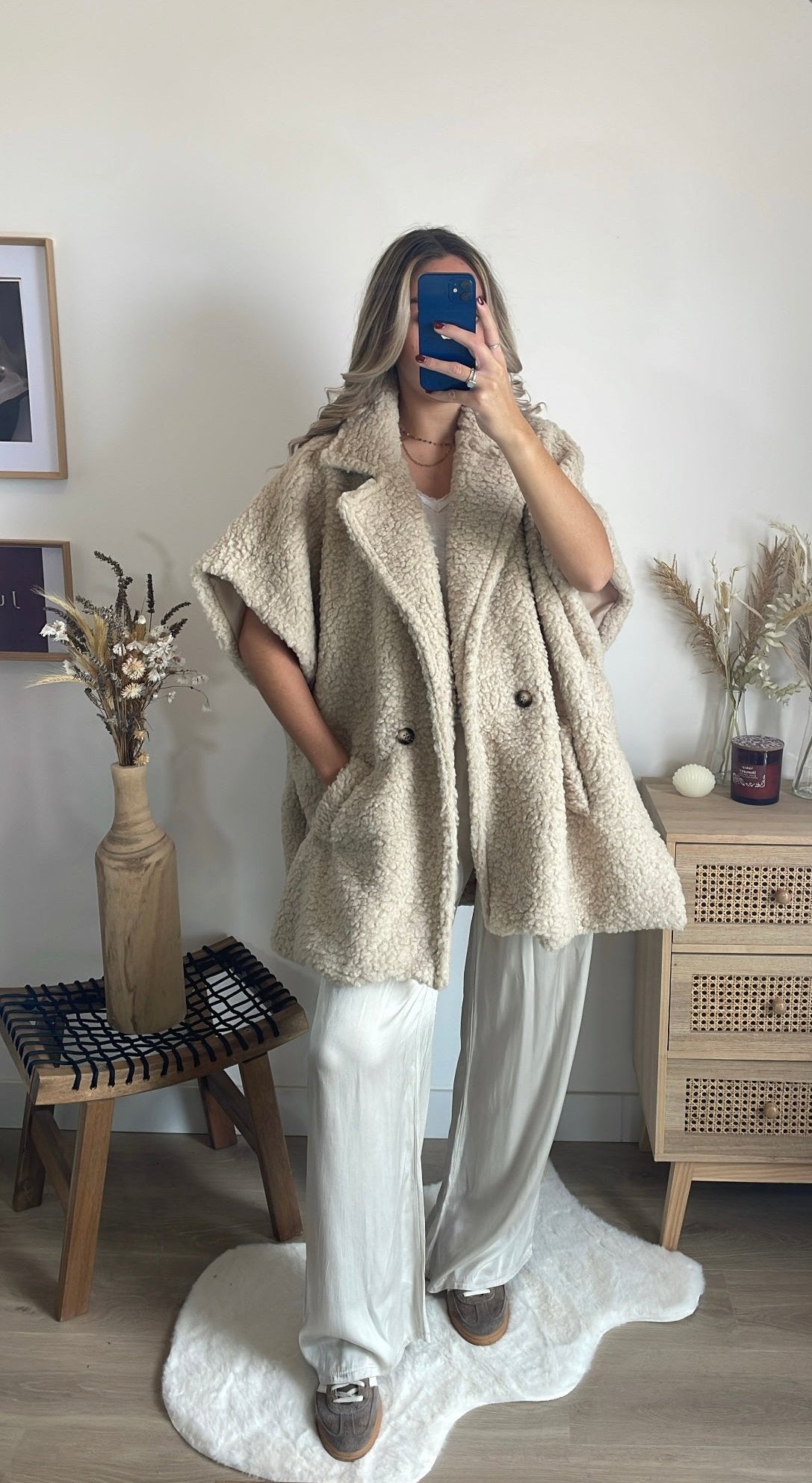 Ajoutez une touche de confort et de style à votre garde-robe avec ce poncho oversize en moumoute – l'élément essentiel pour des journées cosy et élégantes !